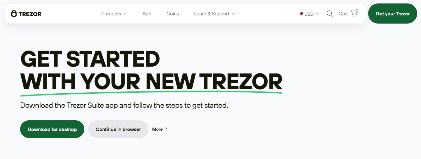 The website will guide you through downloading Trezor Suite, the official desktop and mobile app for managing your wallet. Trezor Suite allows you to view balances, send and receive cryptocurrencies, and monitor transactions securely.
